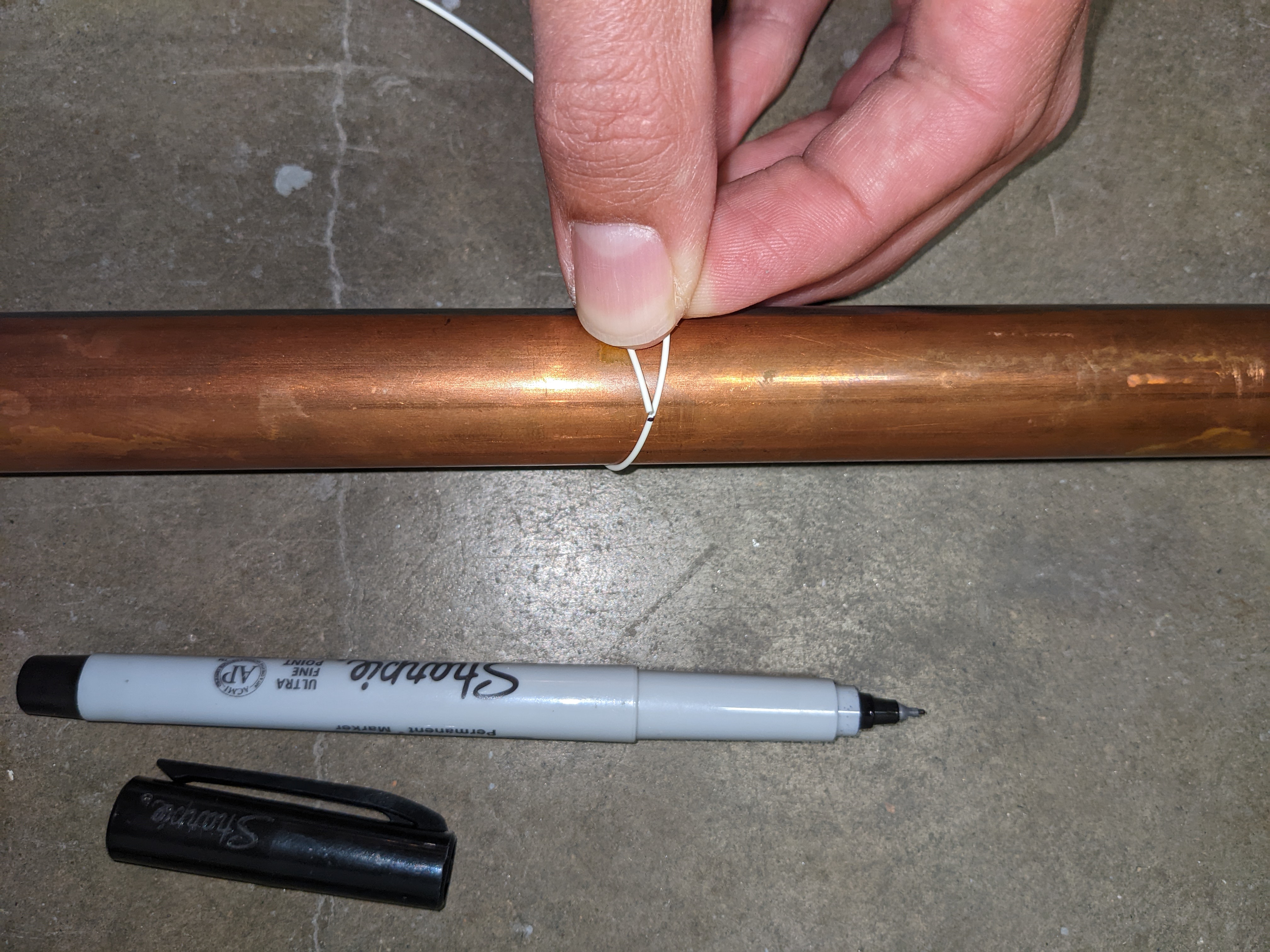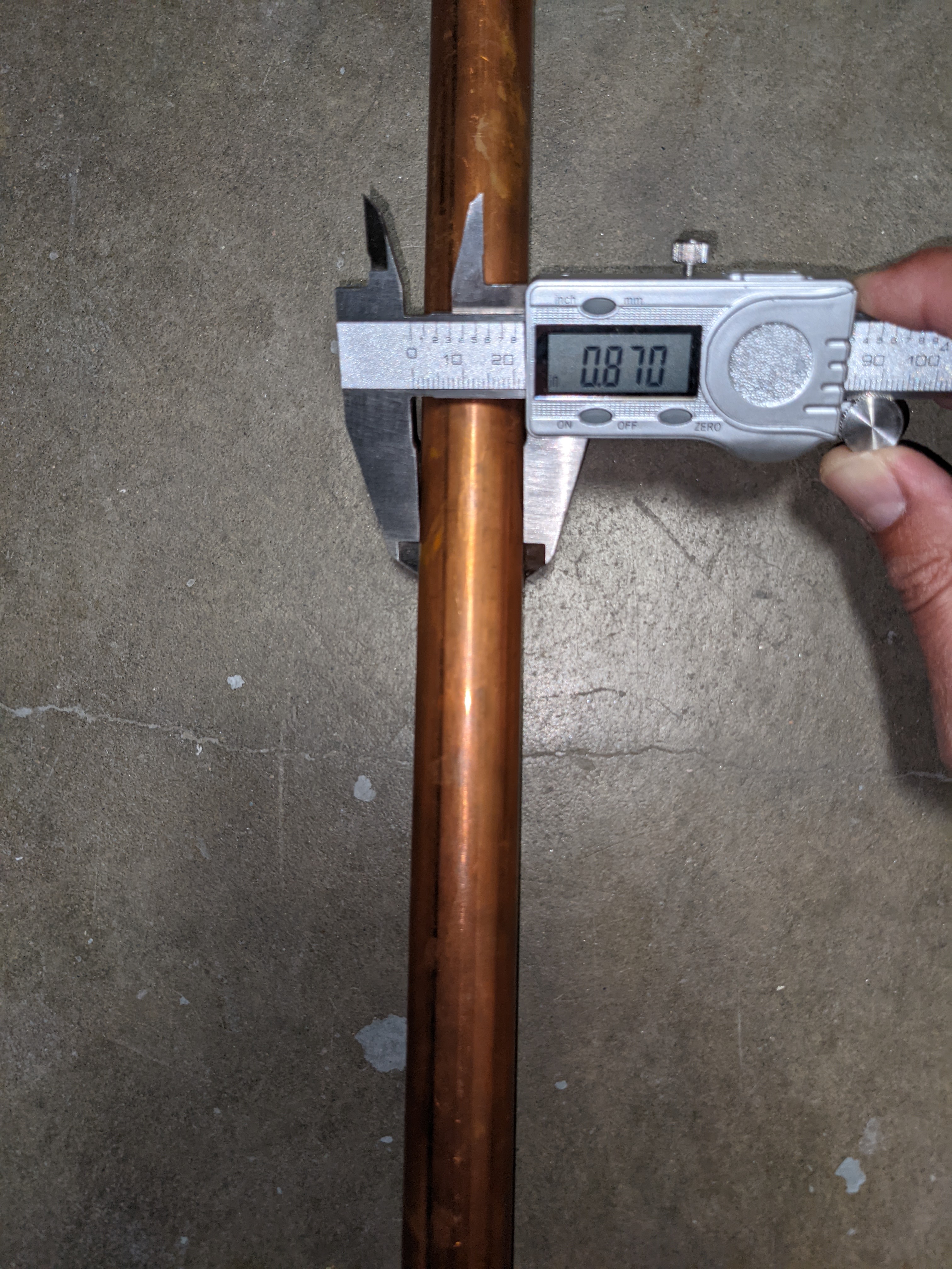 If you're finding it hard with just a ruler, you can use calipers (if you have them) or loosely fasten a clamp to the pipe. Then pull the clamp off and hold it up to the ruler.