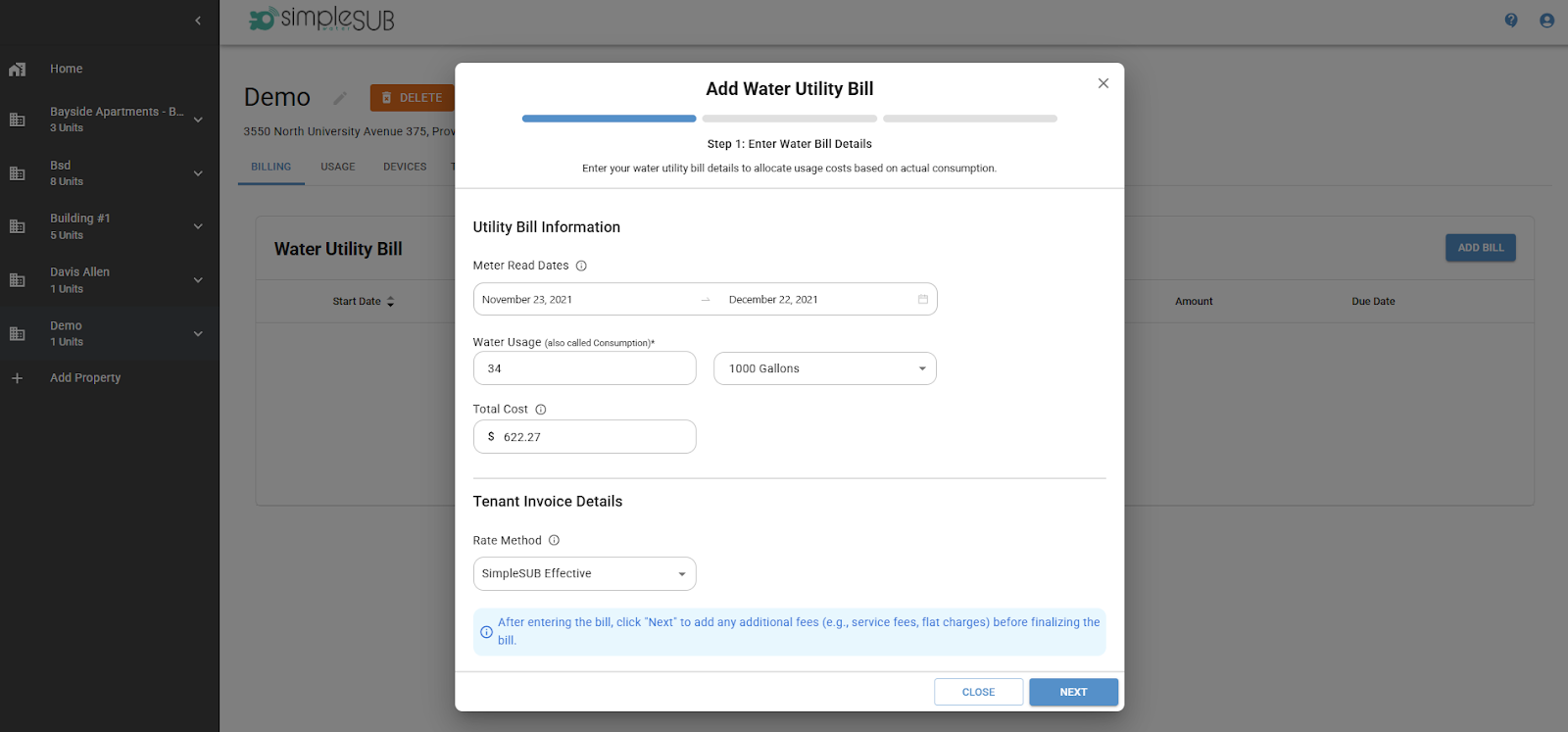 This article walks through how to create a tenant cost report using the default billing setup in the SimpleSUB Web App. This method is designed to help you calculate and allocate water costs accurately across tenants, but it does not send invoices directly to tenants through the Web App.