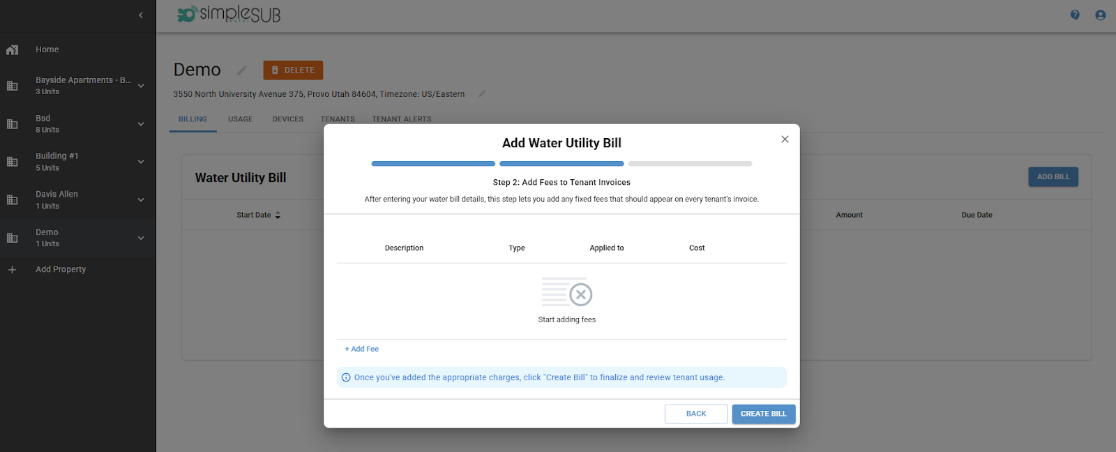 - If the bill includes non-usage-based fees (e.g., fire line, trash), subtract those amounts and add them later as fixed fees. Always verify local and state regulations related to water submetering.