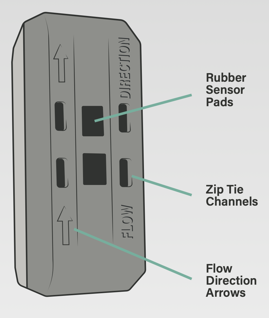 - If debris is present on the pipe (such as dried paint, grease, water, rust, or cement), it will interfere with the rubber sensor pads. The sensor pads are essential to the meter’s functionality, so please ensure the pipe is completely clean and dry before affixing the device to the pipe. Under no circumstances should the sensor pads be removed or tampered with, as this will permanently damage the meter.