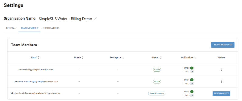 - To add a new team member, click Invite New User.