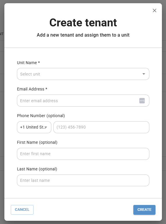- You can import a spreadsheet using the template provided in the app or manually add tenants.