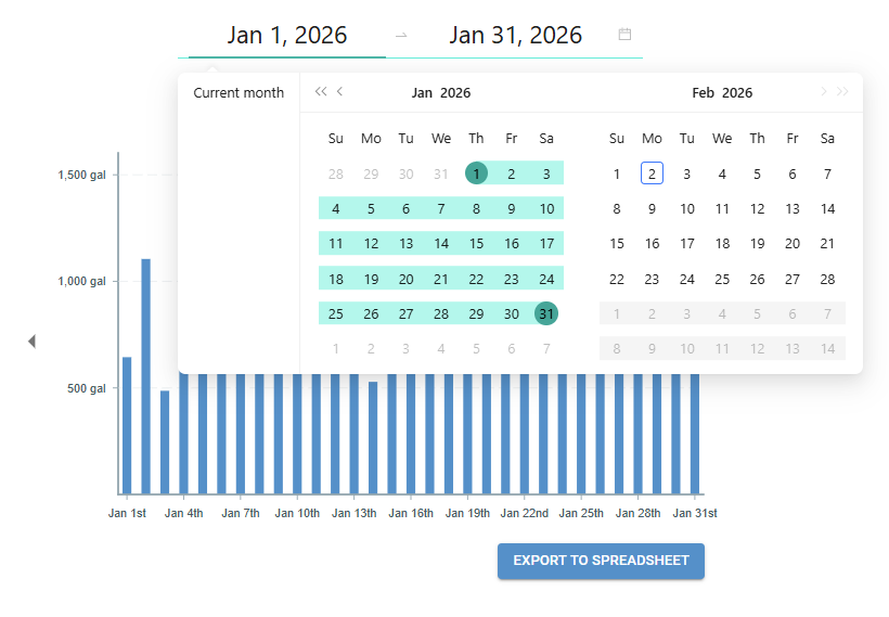 Usage can be viewed at both the property level and the unit level, and reports can be exported for billing or recordkeeping.