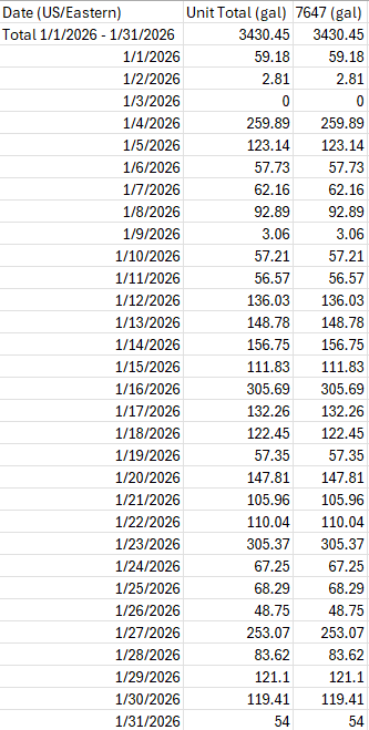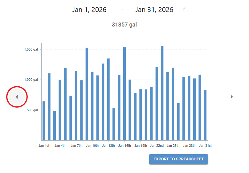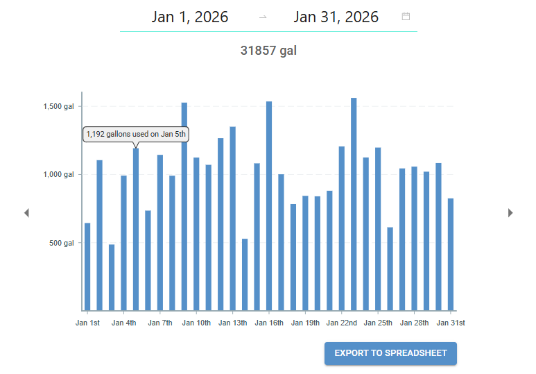 Hover over a specific day on the usage chart to see the total number of gallons used for that day.